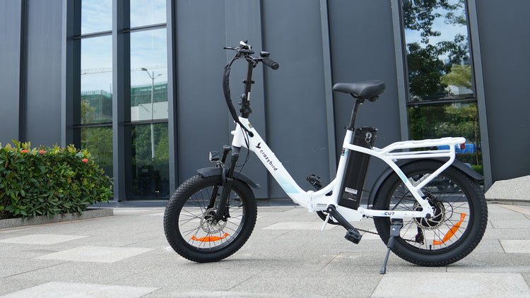 La bicicleta eléctrica plegable Crazybird CU7 es una bicicleta eléctrica compacta y portátil diseñada para viajeros y viajeros urbanos. Está diseñado para que se pueda plegar y desplegar fácilmente, lo que resulta conveniente para el almacenamiento en espacios pequeños como apartamentos, oficinas o maleteros de automóviles. Esta característica mejora la portabilidad y facilita su transporte cuando sea necesario.